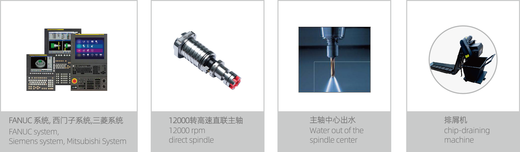 三軸36—48m/min,高速位移可節省非加工時間,大幅提高加工效率和保證加工光潔度。